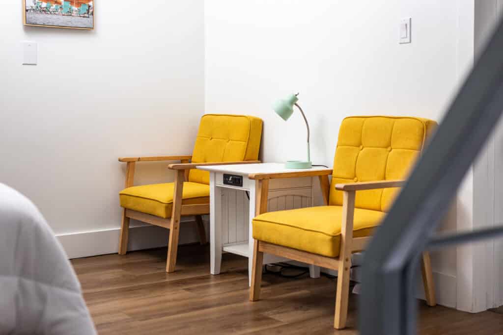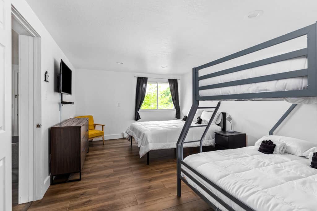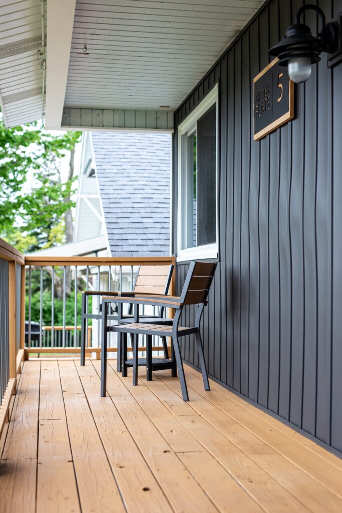 Mitten Flat #5 has its own private entertainment area right outside. This unit also has two bedrooms separated by a full en-suite kitchen and living area so you can sleep however you see fit. Enjoy access to the community hot tub, free wi-fi, outdoor grill and fire pit, on-site laundry, and all the space your party needs when traveling.